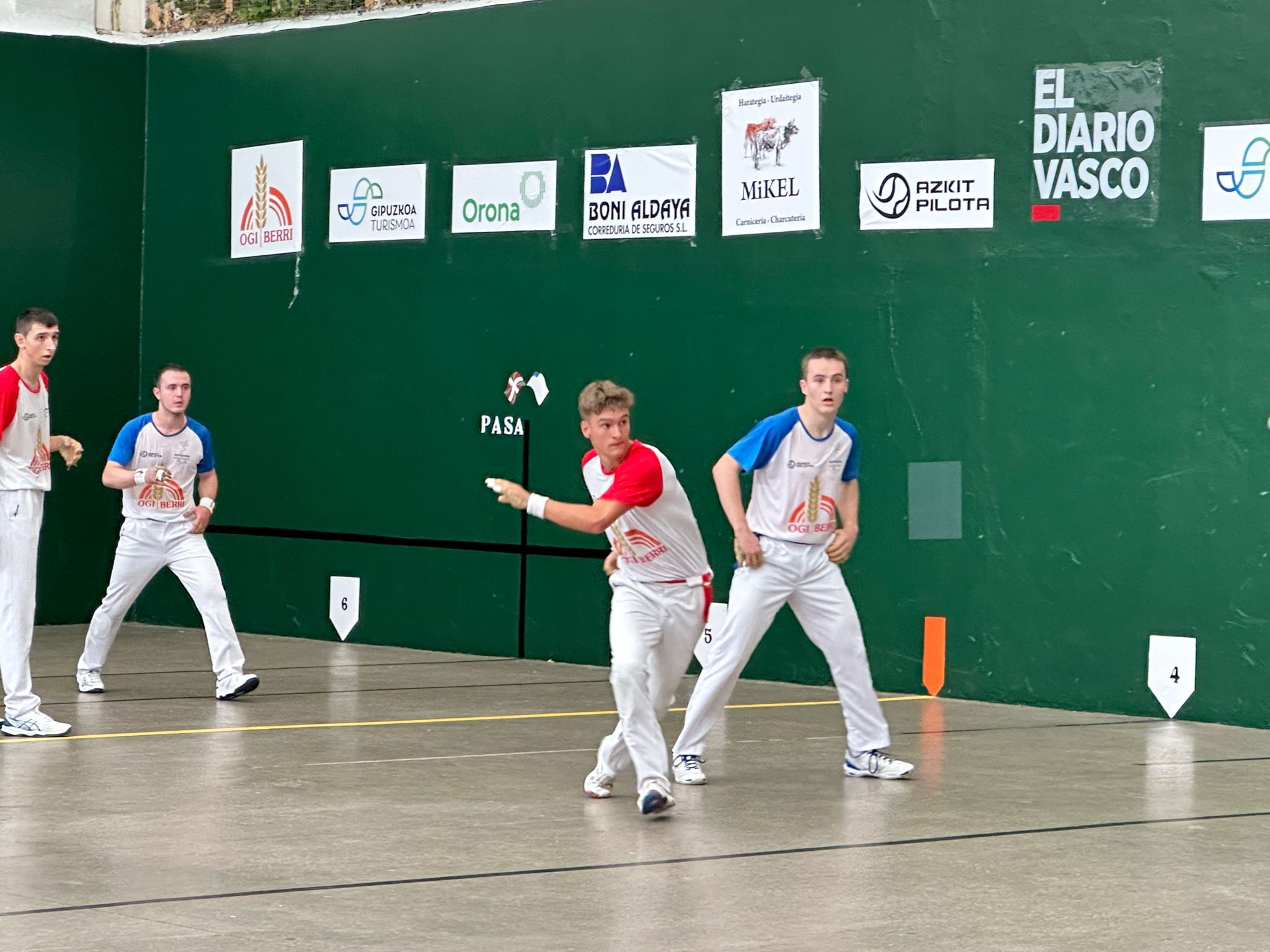 Sin embargo, Ekhi y Arkaitz se metieron de lleno en el partido. Sacaron su pelota y fueron poco a poco cogiendo tono de competición. Aumentaron sus prestaciones con Irribarria pudiendo estar mucho más metido y Gabirondo yendo de menos a más. Forzaron mucho a Landa y el dominio del partido lo iban a tener ellos. Apezetxea, también iba a dejar algunos obsequios en modo de regalo para ver como los rivales les sobrepasaban dentro del juego y aquello se reflejaba en el marcador.