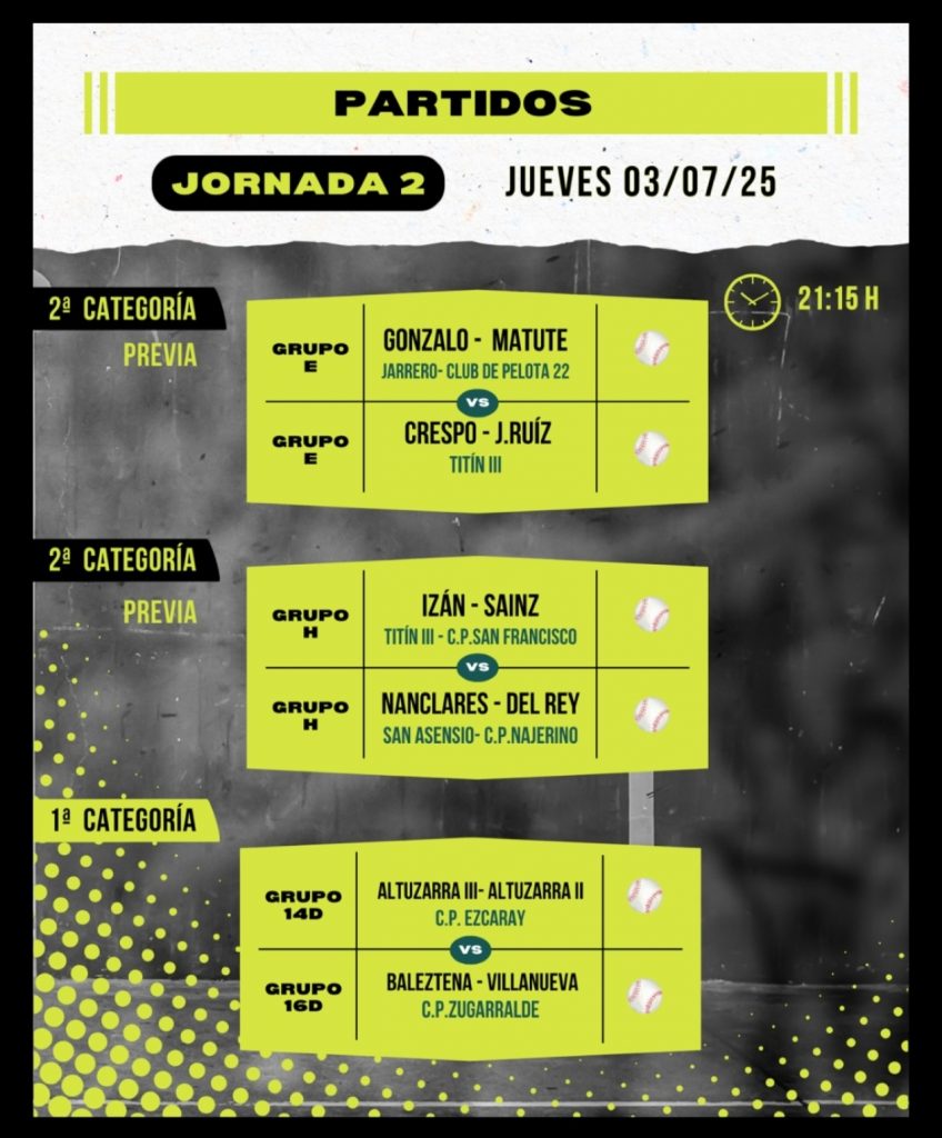 Cartelera 2ª jornada del Torneo San Isidro de Baños de Río Tobía