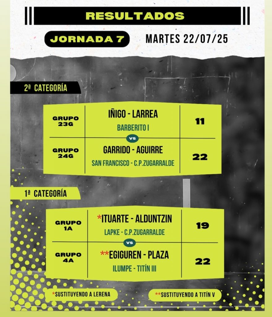 Ituarte* (Lapke) – Alduntzin (C.P. Zugarralde) 19 vs Egiguren (Ilumpe) – Plaza (Titín III) 22