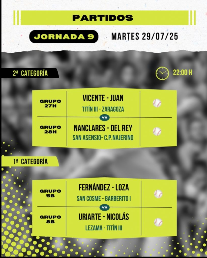 Cartelera 9ª jornada del Torneo San Isidro de Baños de Río Tobía