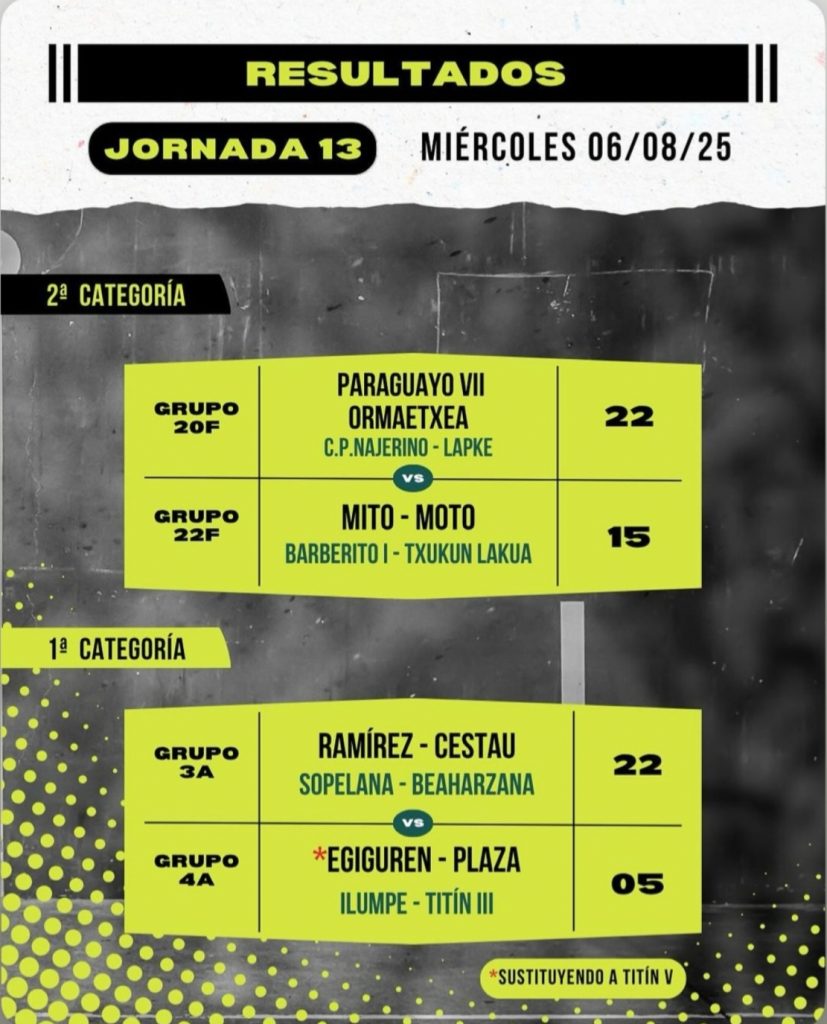 Paraguayo VII (C.P. Najerino) – Oromaetxea (Lapke) 22 vs Mito (Barberito I) – Moto (Txukun Lakua) 15