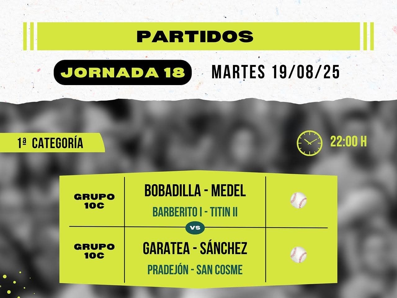 Cartelera 18ª jornada del Torneo San Isidro de Baños de Río Tobía