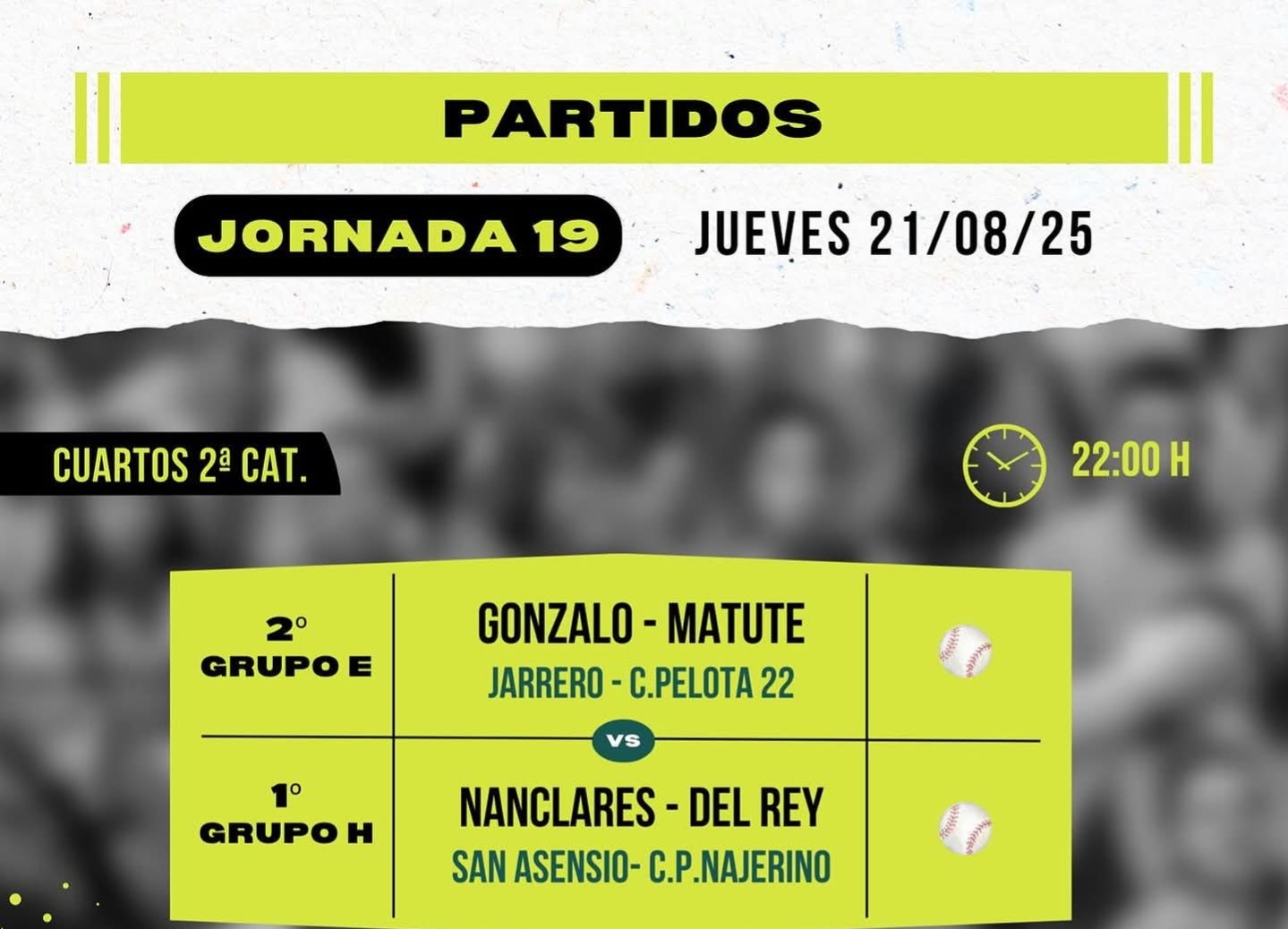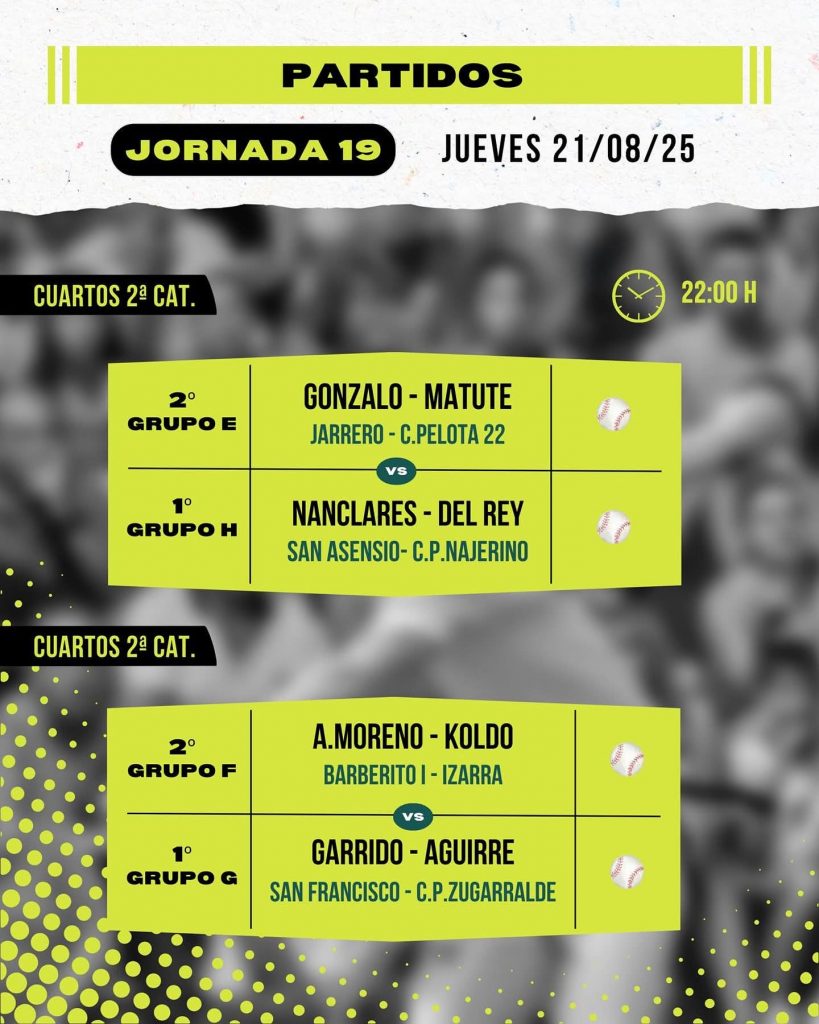 Cartelera 19ª jornada del Torneo San Isidro de Baños de Río Tobía