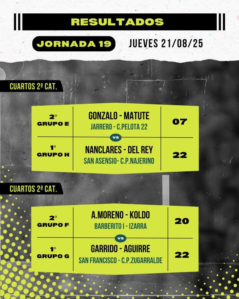 A. Moreno (Barberito I) – Koldo (Izarra) 20 vs Garrido (San Francisco) – Agirre (C.P. Zugarralde) 22