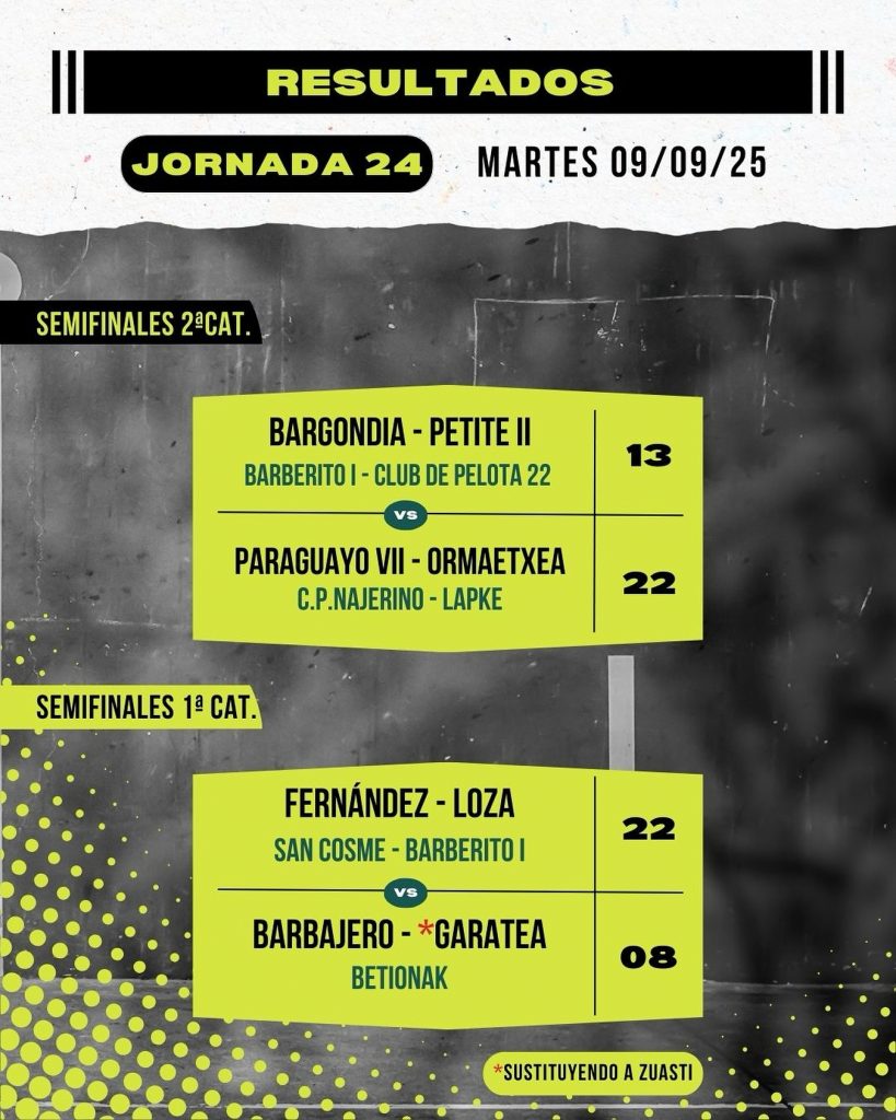 Bargondia (Barberito I) – Petite II (Club Pelota 22) 13 vs Paraguayo VII (C.P. Najerino) – Ormaetxea (Lapke) 22