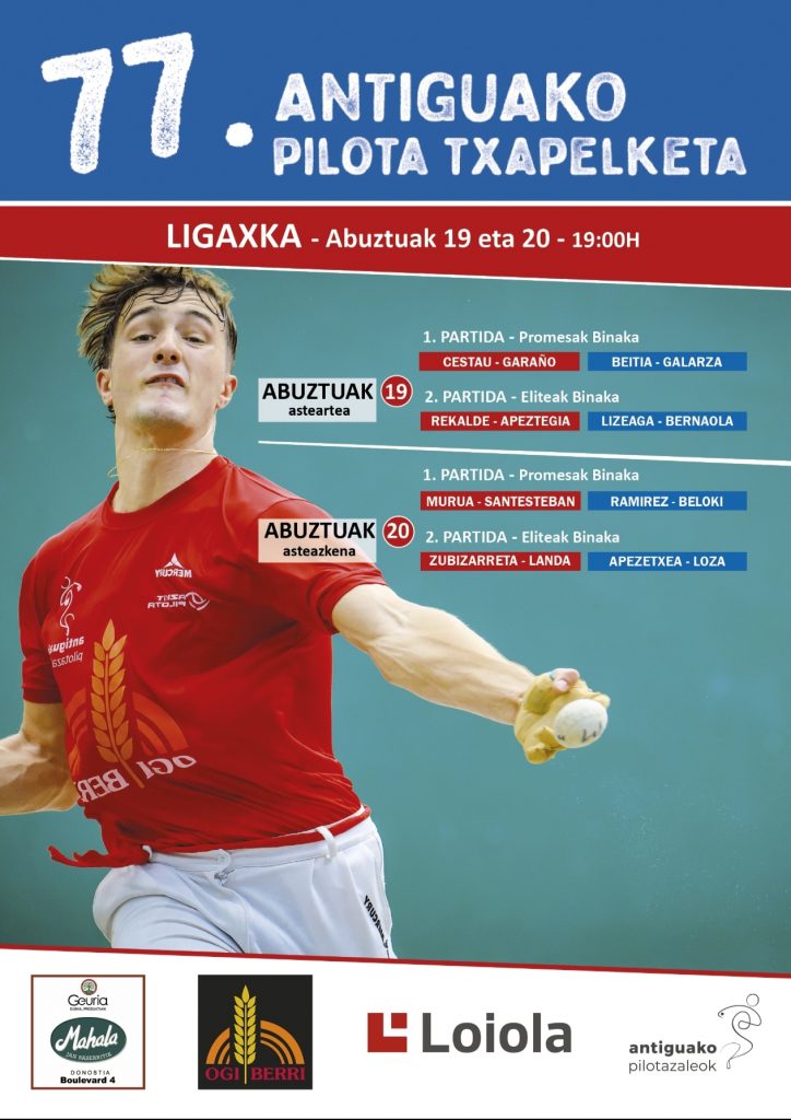 El martes 19 de agosto, a partir de las 19:00 comenzará el primer festival con el duelo de los promesas del grupo A. Markel Calvo será baja por mal de manos y su lugar lo ocupará el navarro Endika Galarza (hijo del que fuera profesional Enrique Galarza). Se medirán a Joanes Cestau e Intza Garaño. En este grupo, las cuentas pueden estar bastante claras. Cestau y Garaño, cosechando solo 2 tantos, ya estarán en semifinales ya que así evitarían ese triple empate ante Etxeberria-Leonet. Beitia y Galarza, llegando al cartón 22 estarán en semifinales y para disponer del primer puesto, tendrán que ganar por más de 14 tantos a sus oponentes. Si pierden el vizcaíno y el navarro, Cestau-Garaño con dos de dos estarán en semifinales y Etxeberria y Leonet se clasificarán como segundos.
