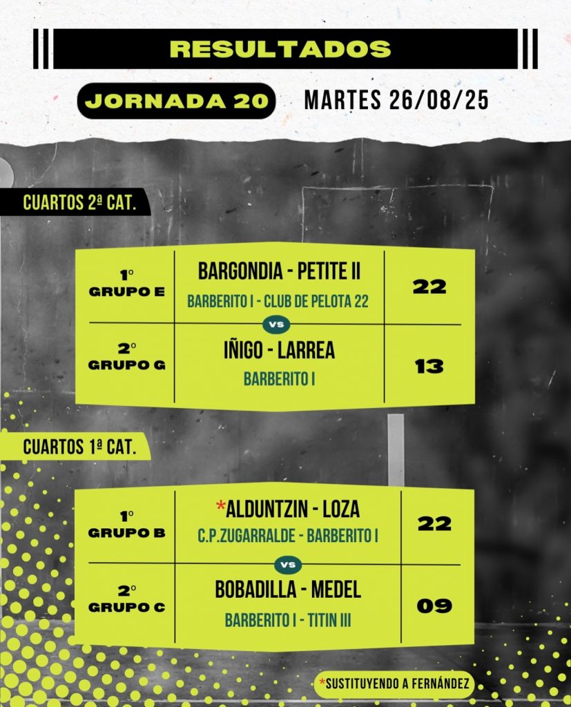 Bargondia (Barberito I) – Petite II (Club Pelota 22) 22 vs Iñigo (Barberito I) – Larrea (Barberito I) 13